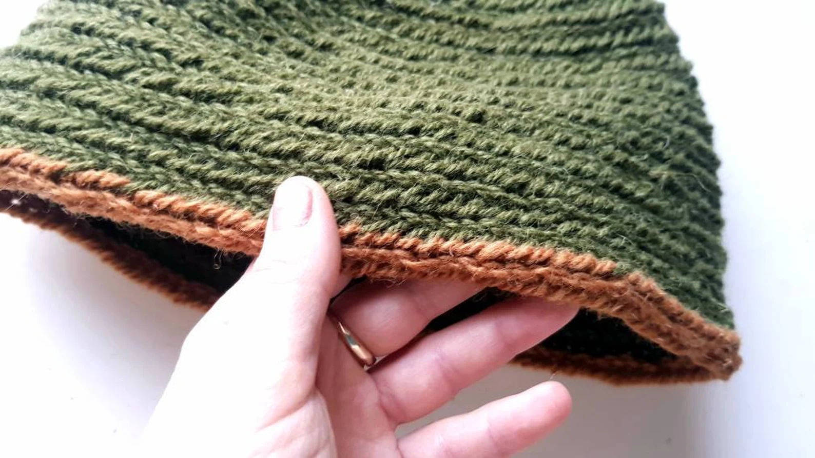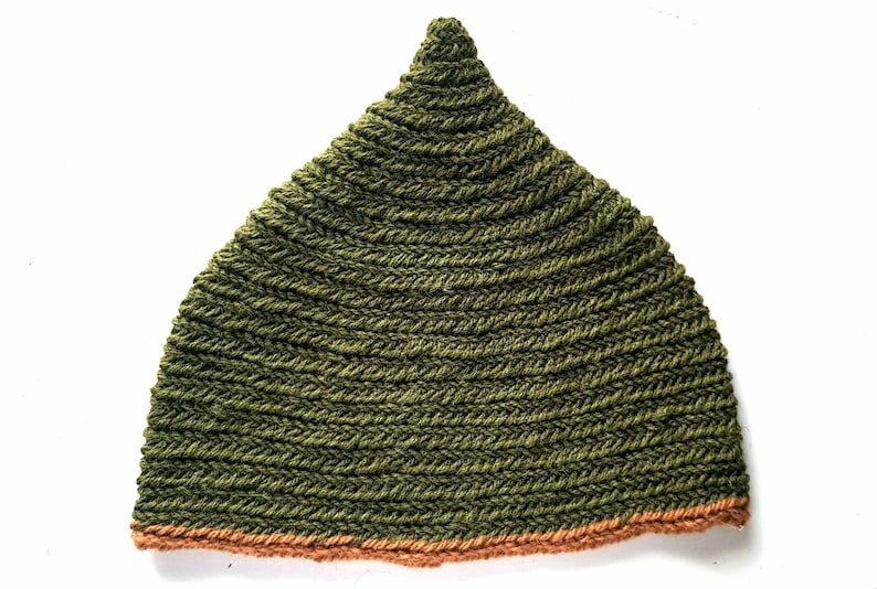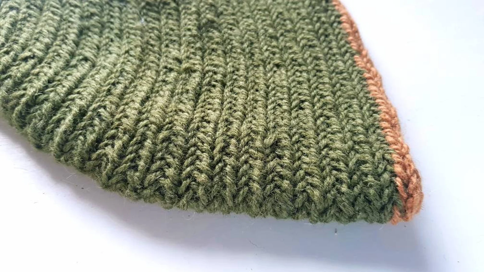 100% wool olive-green colour with orange/red line. size 60-63 cm
