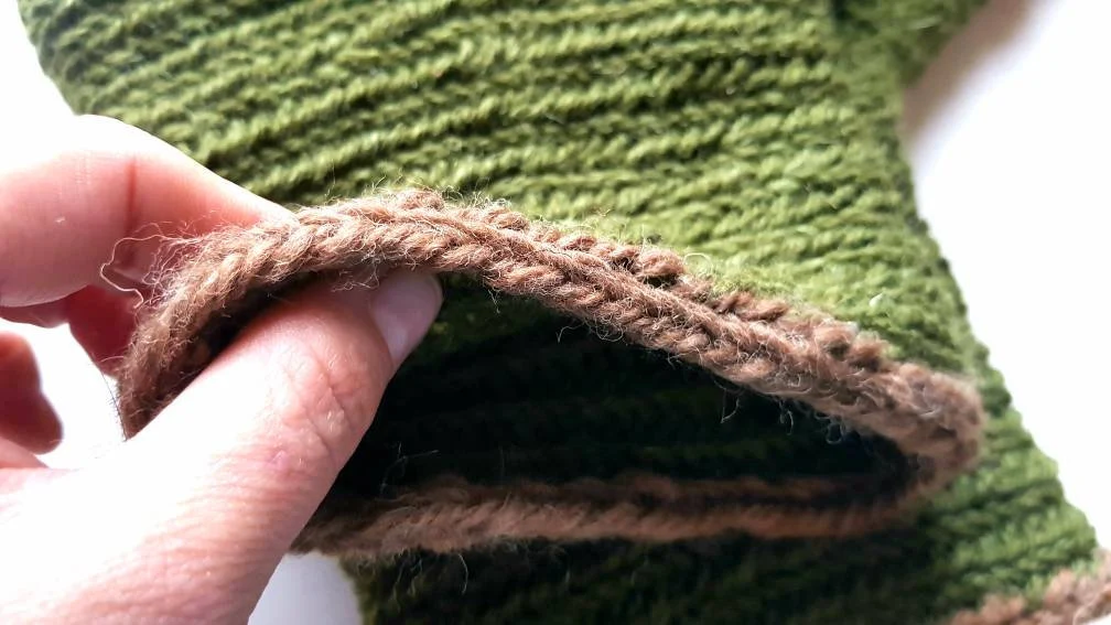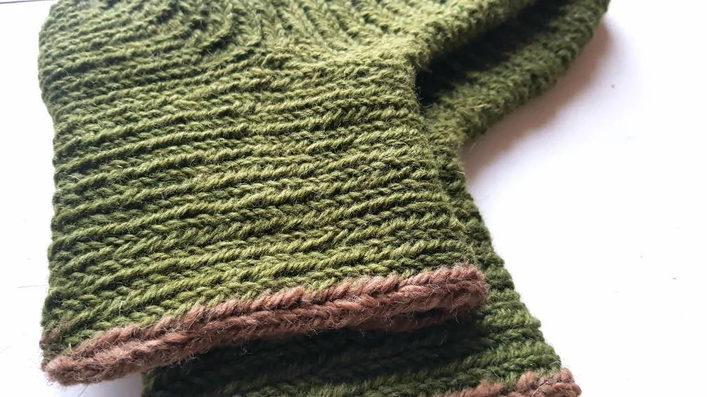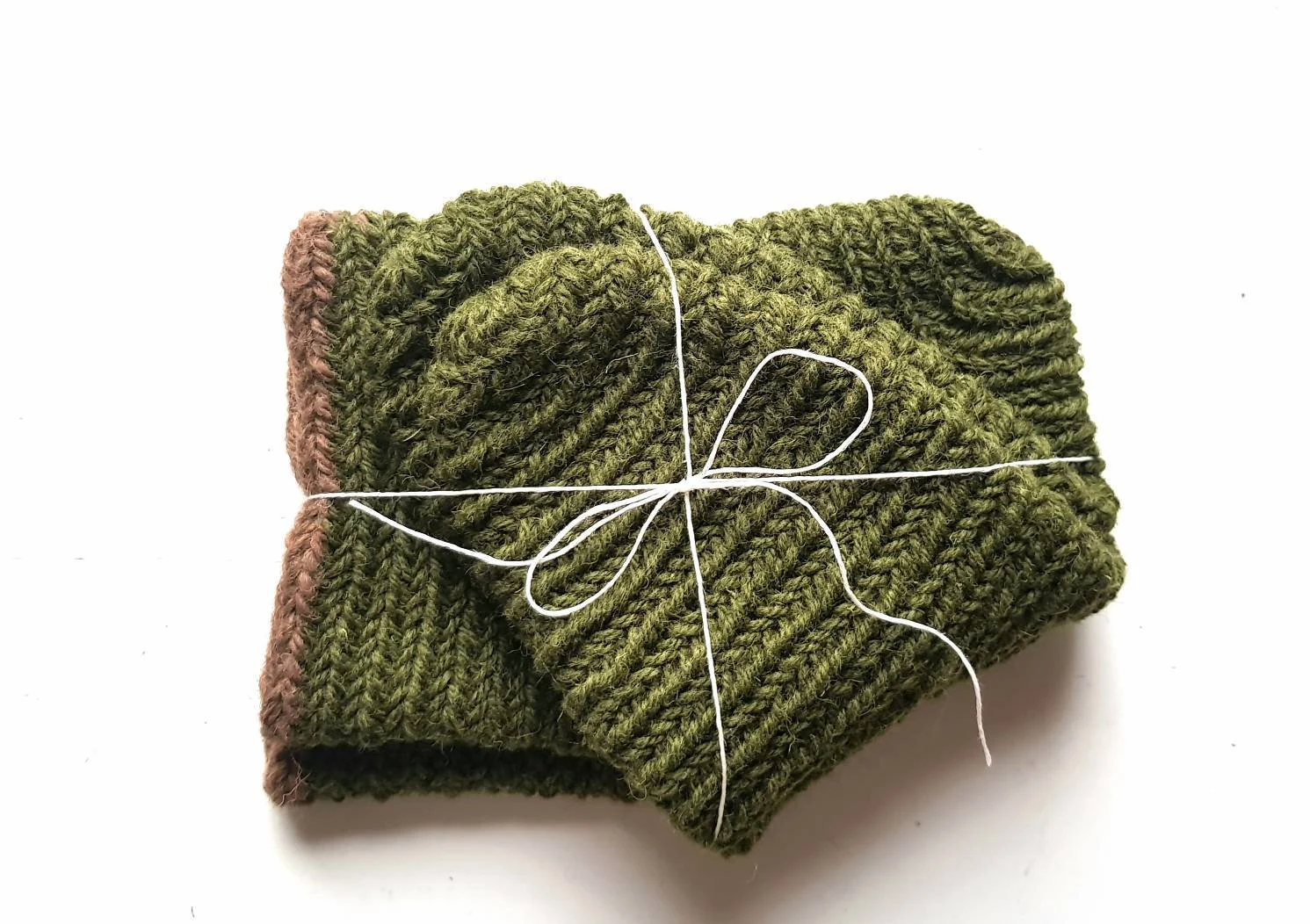 Made of 100% olive-green wool, with brown line on the top.