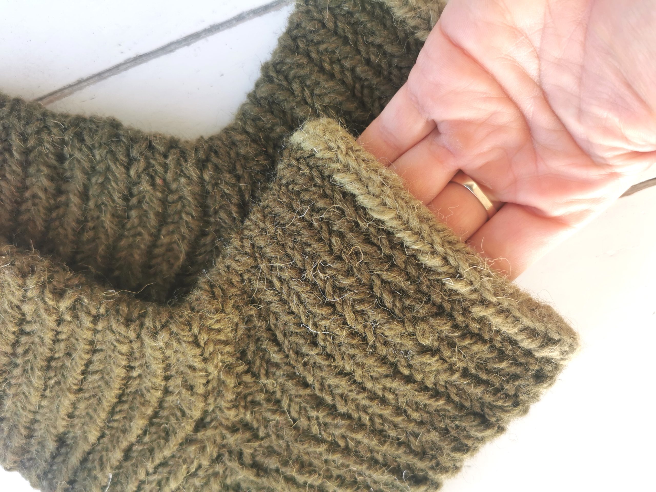 100% perfectly handmade of great wool in dark olive-green colour